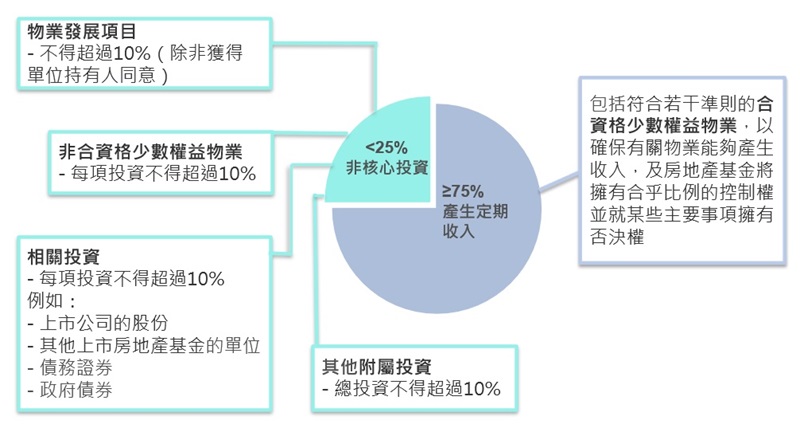 - 非核心投資(包括物業發展項目的投資)不得超過房地產基金的資產總值的25%